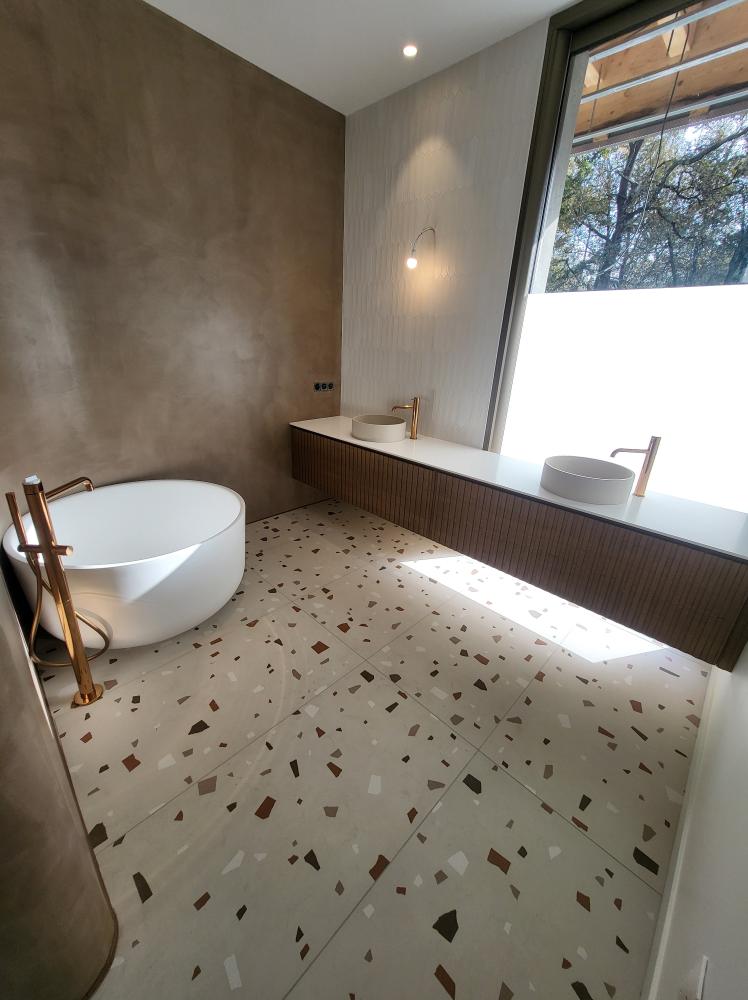 Grâce à son application soignée, il garantit une longévité exceptionnelle, sans dégradation ni altération au fil du temps. Le béton ciré, en plus de sa valeur esthétique, est également un excellent isolant thermique et acoustique, offrant un confort accru tout au long de l'année.